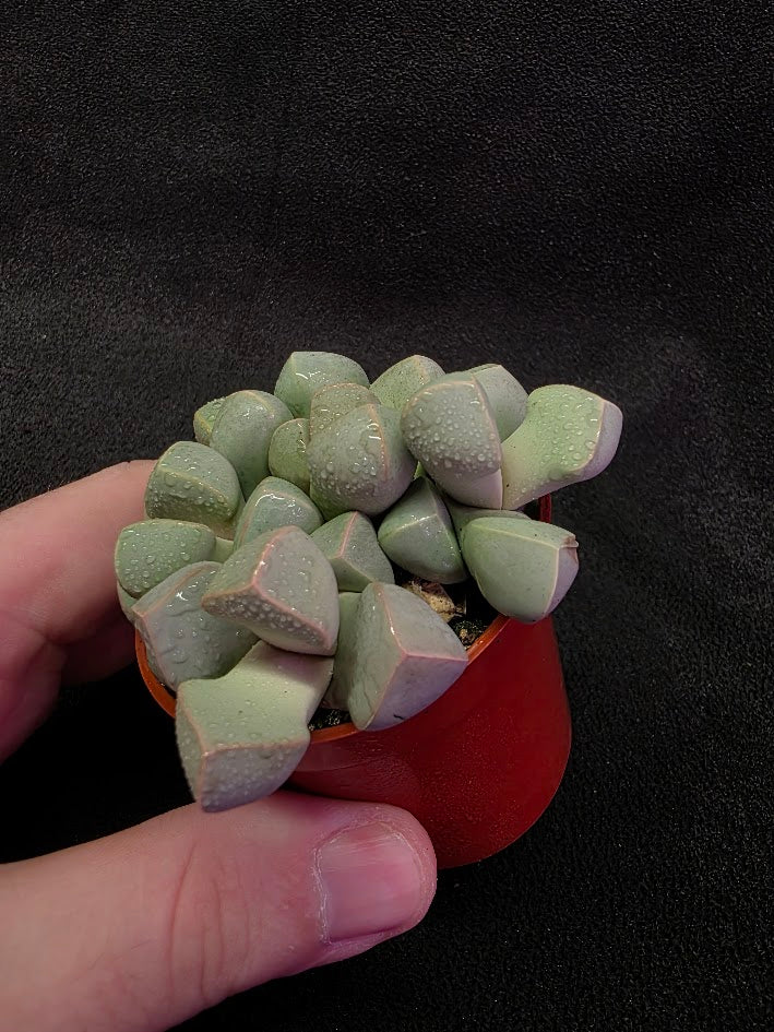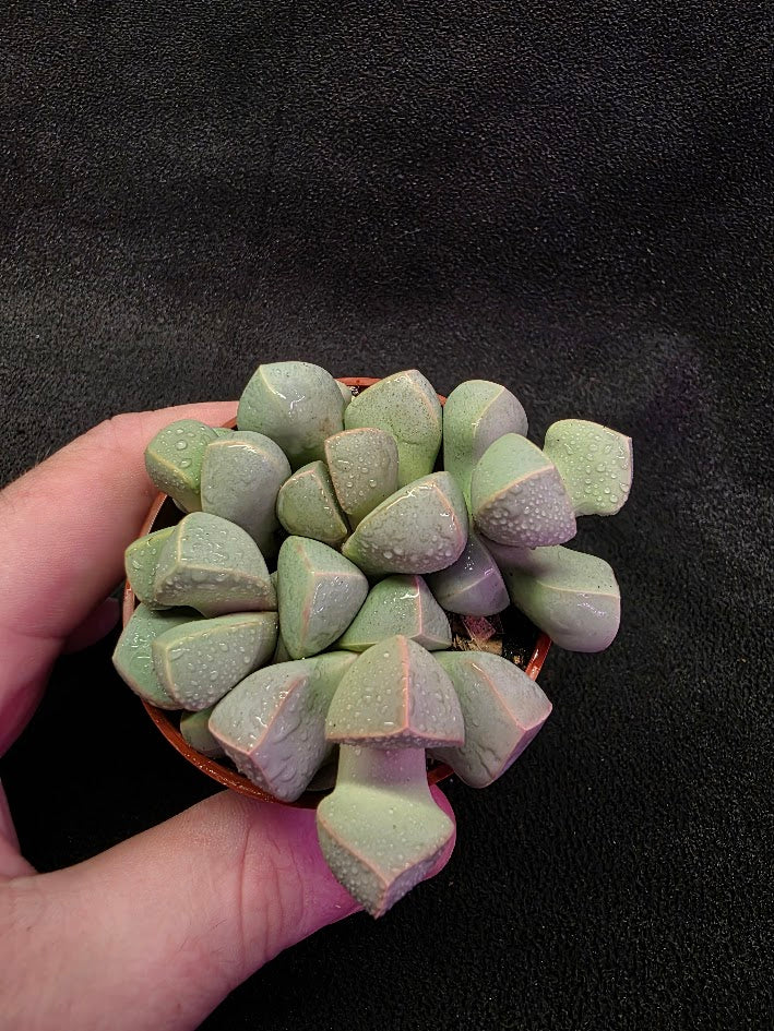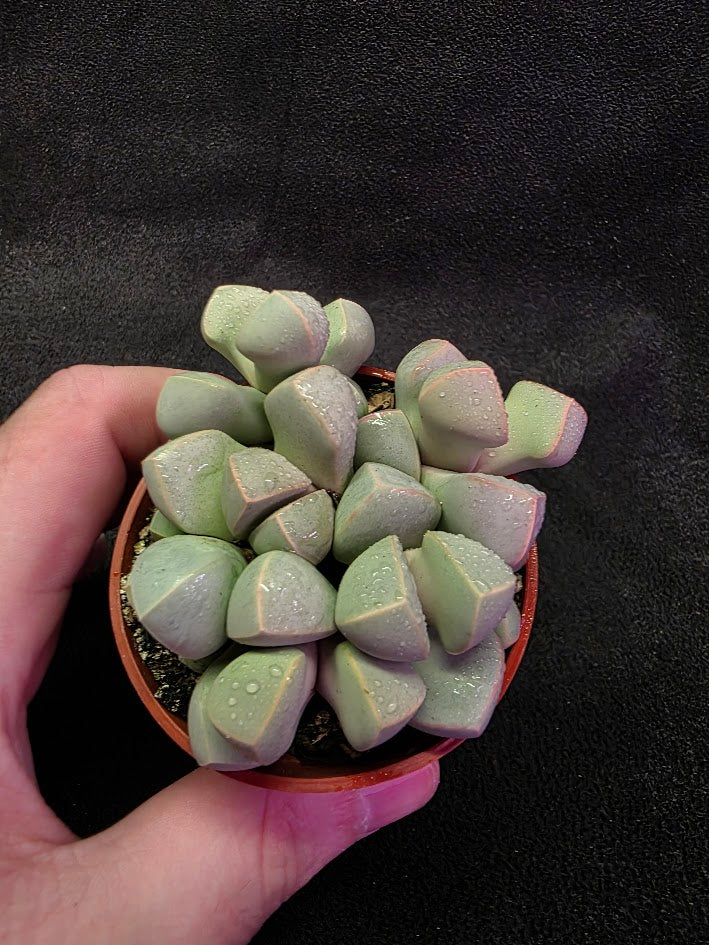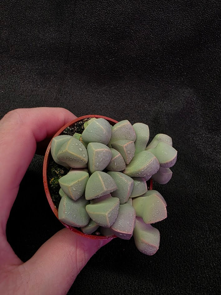 Growing slowly and remaining compact—typically reaching about 3 to 4 inches tall—this succulent is ideal for small pots, windowsills, and curated succulent arrangements. Its architectural form and low-maintenance care needs make it a standout addition to any indoor plant collection. Whether displayed alone as a sculptural centerpiece or grouped with other succulents, the Split Rock Succulent offers distinctive beauty and effortless desert elegance year-round.